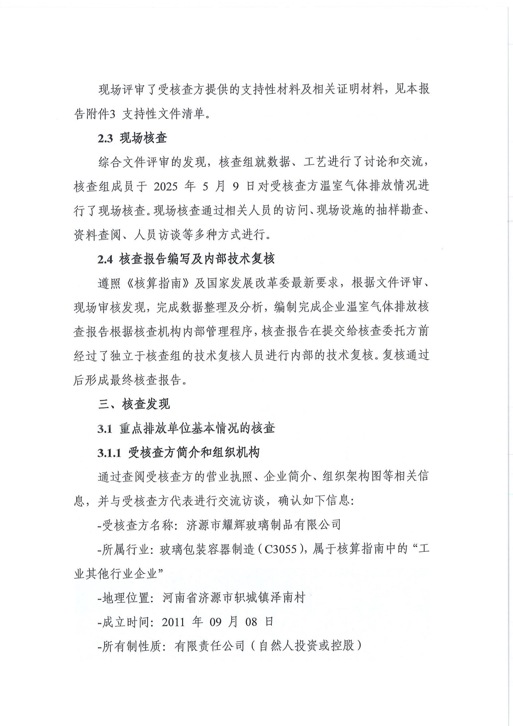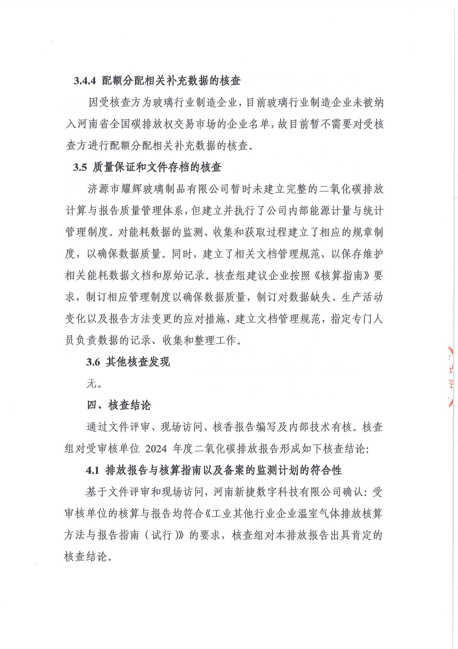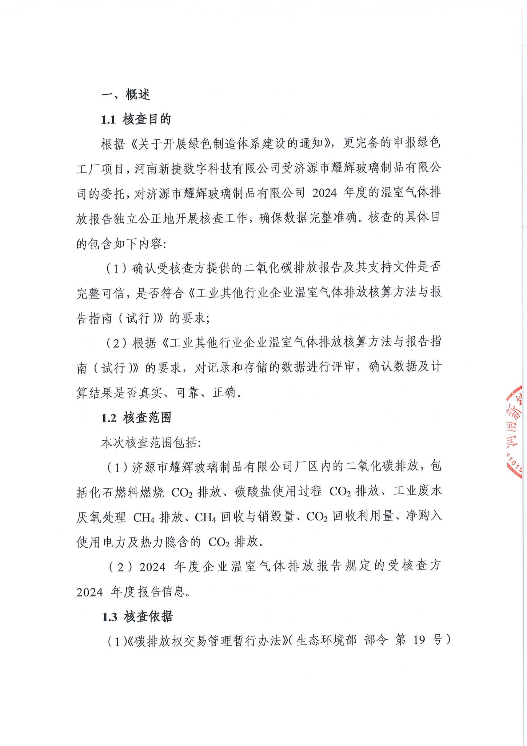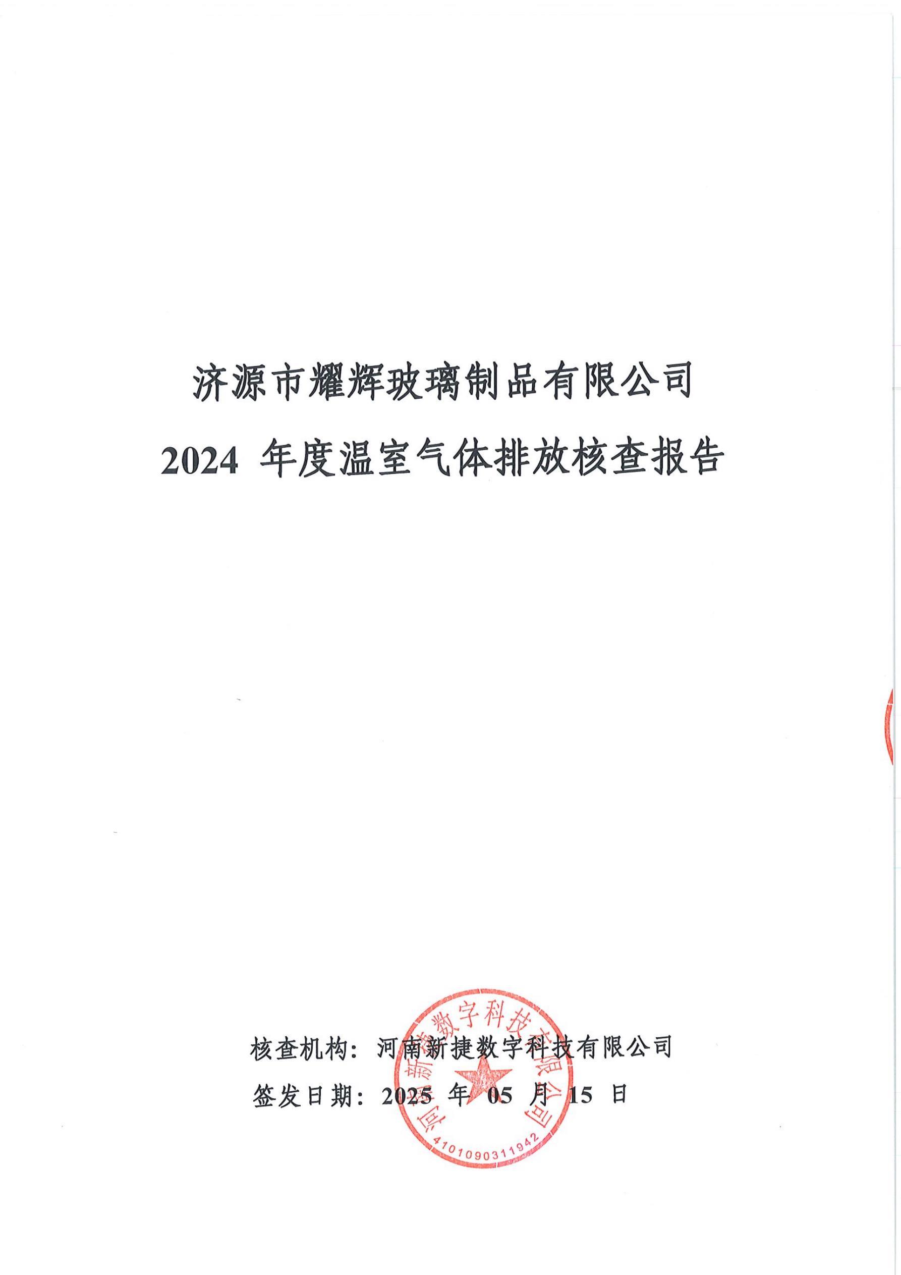 濟源市耀輝玻璃制品有(yǒu)限公(gōng)司 2024 年度溫室氣體(tǐ)排放核查報告