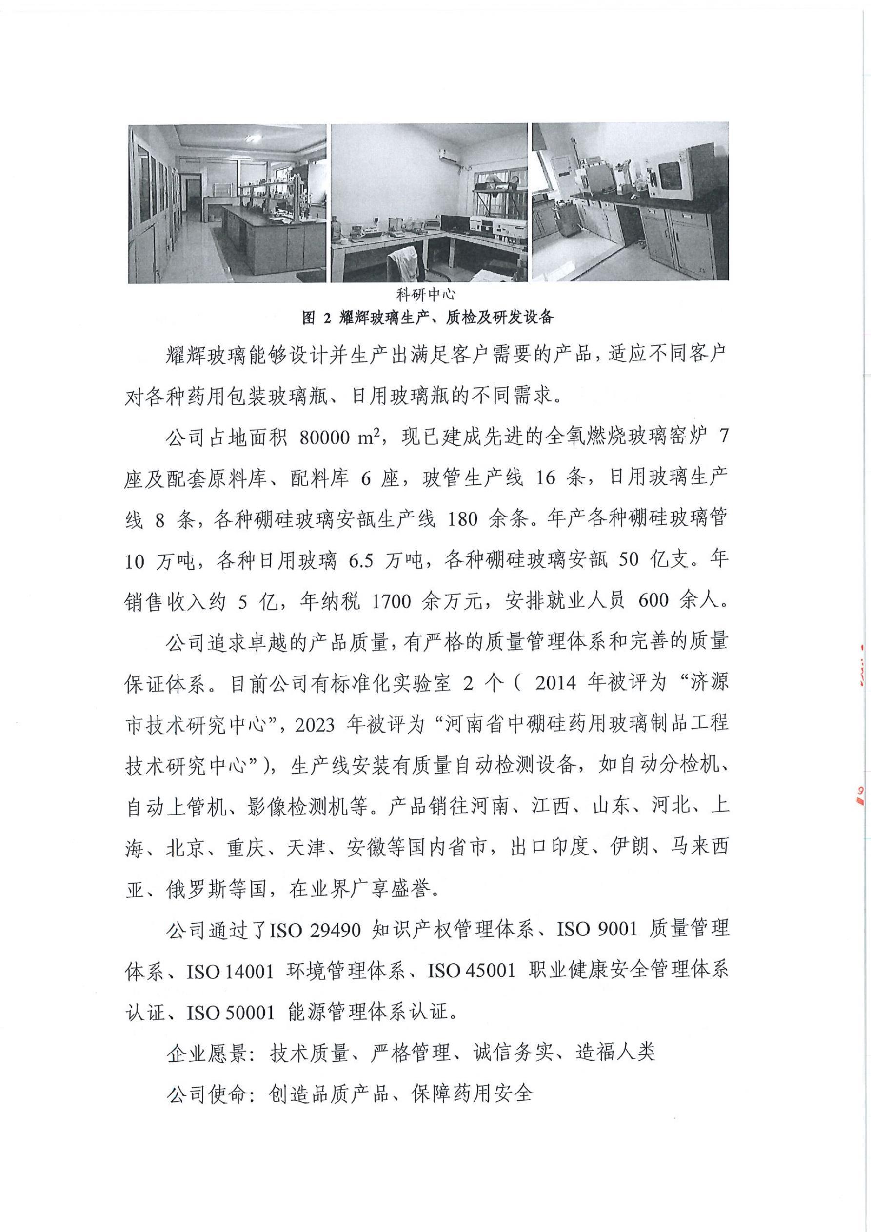 濟源市耀輝玻璃制品有(yǒu)限公(gōng)司 企業社會責任報告 (2O24年度)